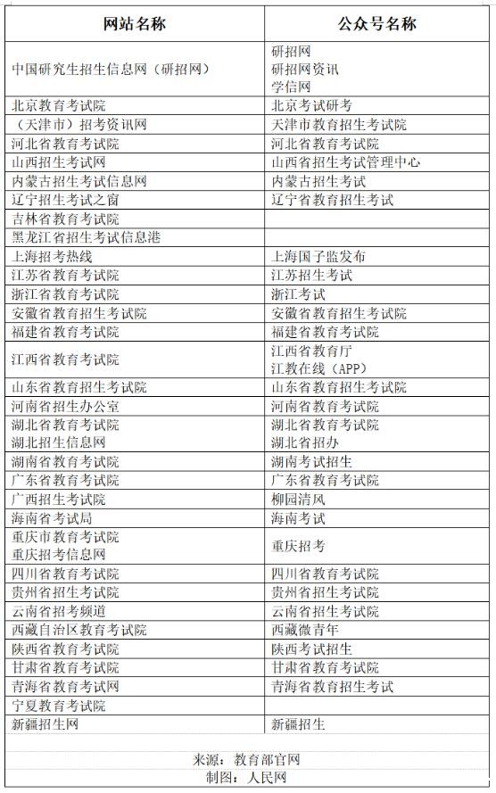 中国研究生招生信息网及31个省(区、市)教育招生考试机构网站及公众号等信息汇总