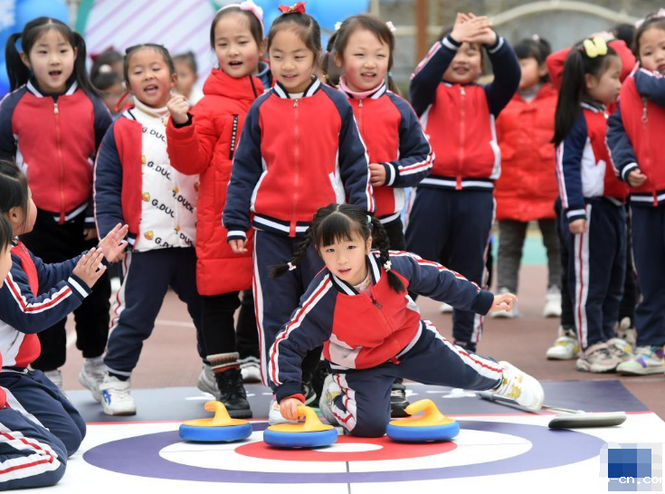 当日是合肥市中小学幼儿园春季开学第一天,合肥市泰山路幼儿园在开学典礼上设置了“旱地冰壶”“旱地冰球”“滑雪橇”等游戏环节,让孩子们了解冬奥会的相关知识,感受运动的乐趣,迎接新学期的到来。