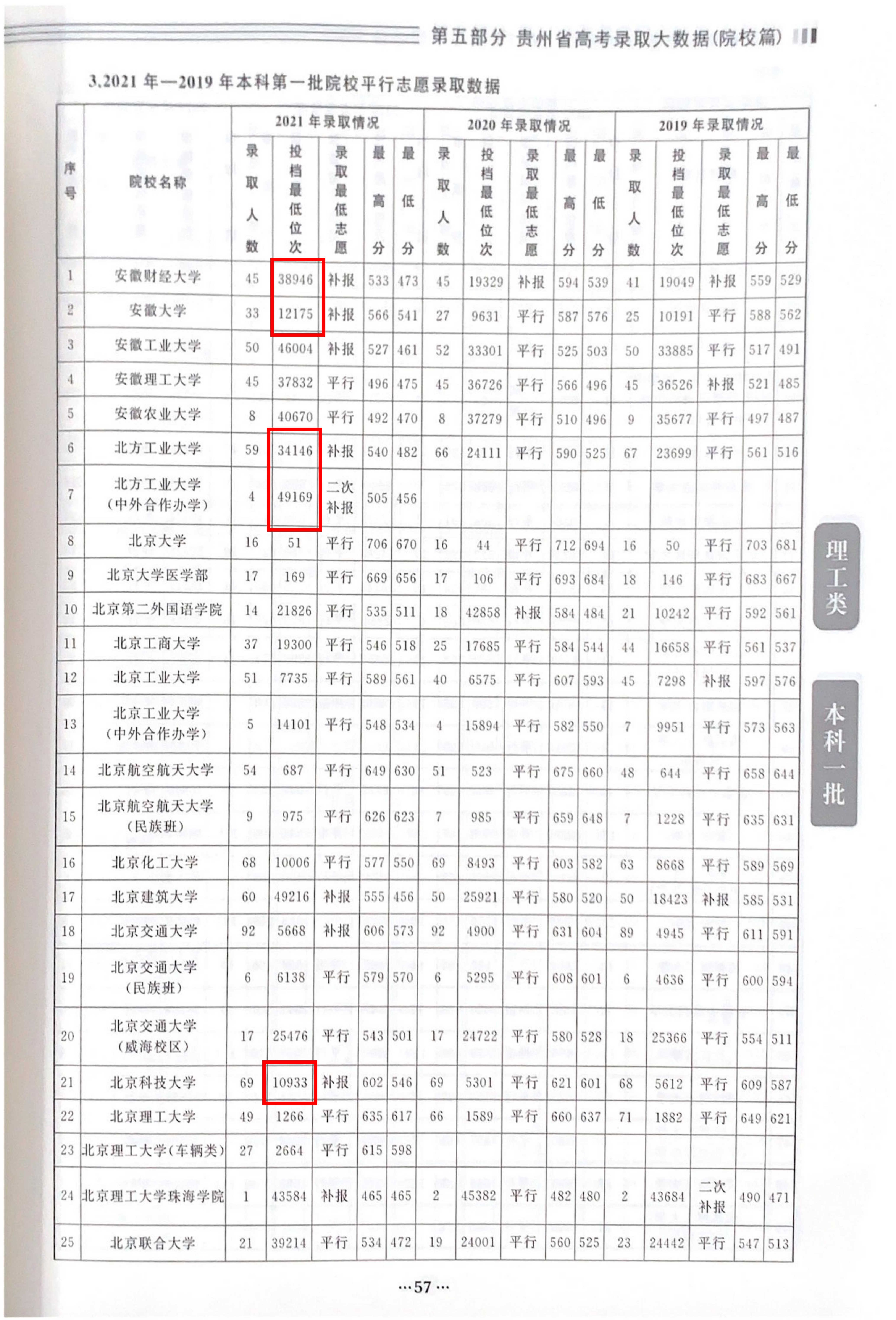 上图为,我省2021年高考第一批本科院校平行志愿投档情况部分,下图为某志愿报考指南其中一页内容,以“投档最低位次”为例,就有5个数据错误