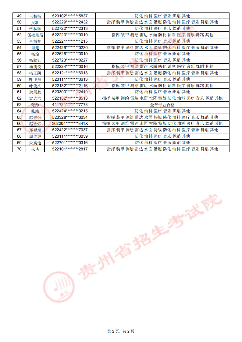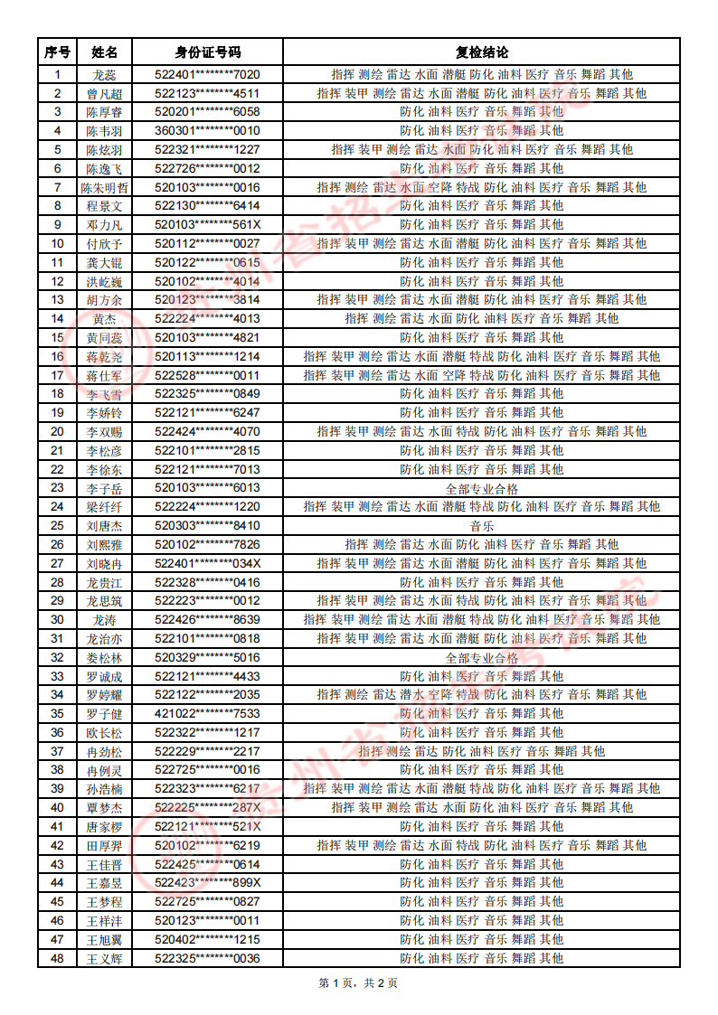 贵州省2022年军队院校招收普通高中毕业生体格复检合格考生名单公布如下: