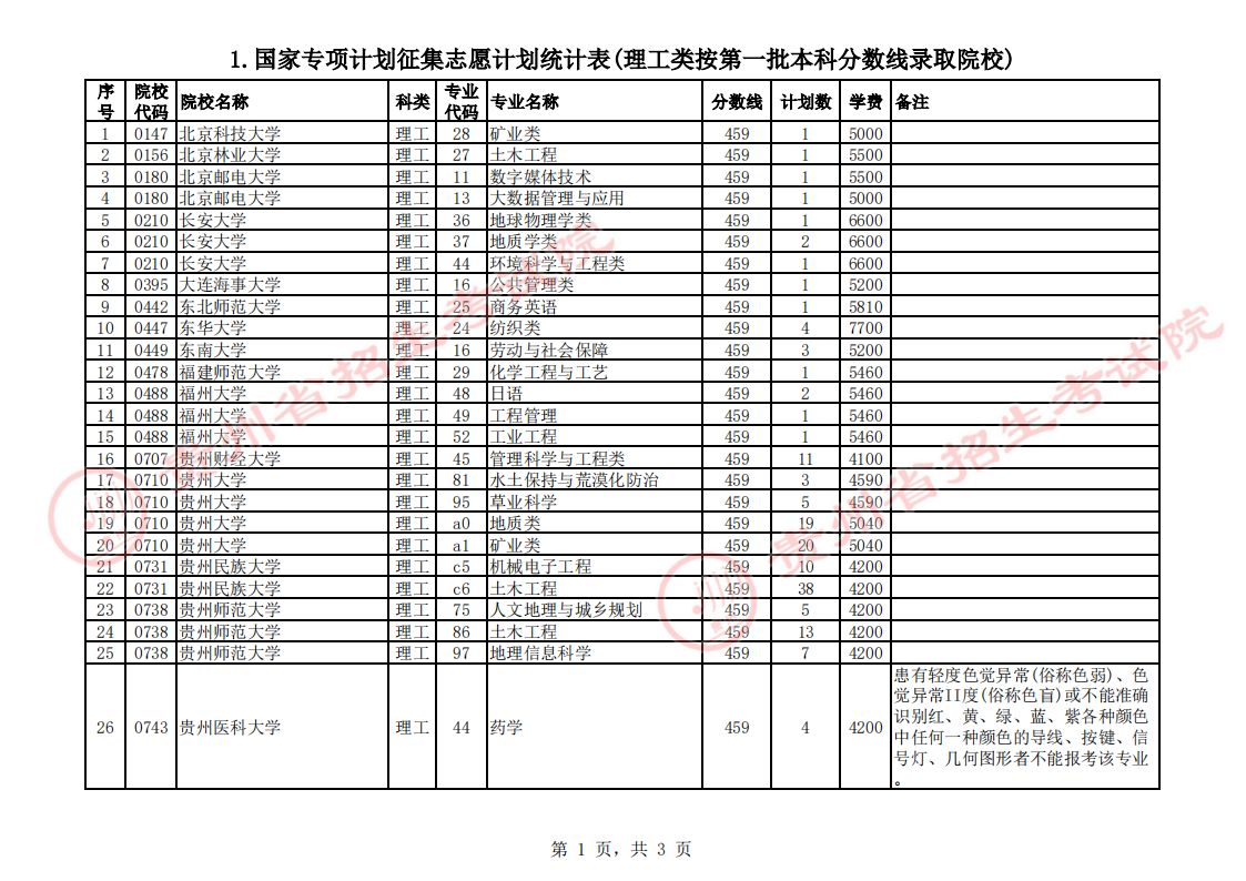 一、征集志愿对象:已通过国家专项计划报考资格审核合格且分数达到要求的未被录取考生。