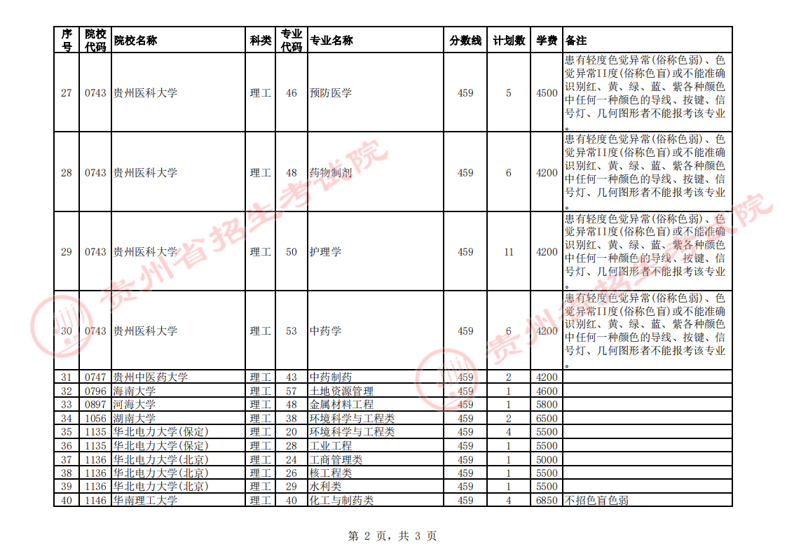 二、院校征集志愿计划数及分数线见附表,考生填报时,请仔细查阅《贵州省2023年高考高校招生专业目录》和院校招生章程,了解院校招生专业的具体要求。
