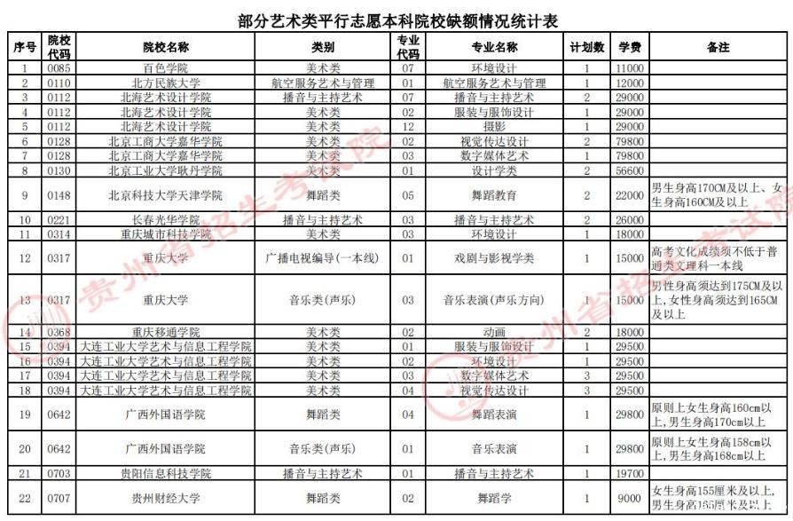 艺术类平行志愿本科院校投档后,部分院校因生源不足和考生不服从专业调剂等原因退档,尚有剩余计划,将在网上征集志愿。具体说明如下: