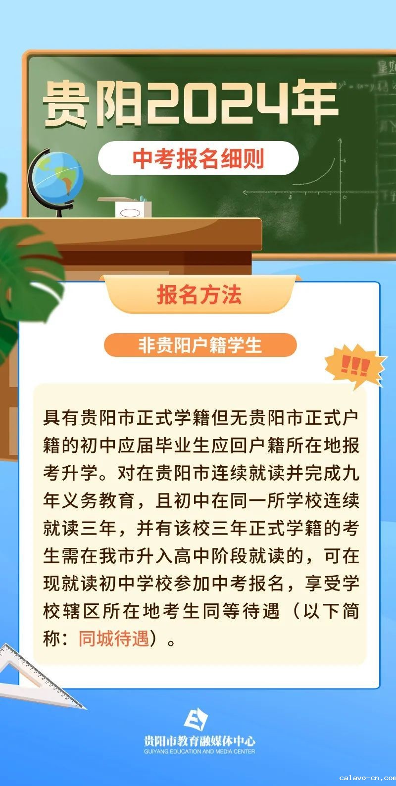 根据要求,为深入推进考试招生制度改革,促进义务教育优质均衡发展和高中阶段各类教育协调发展,维护考试招生公平,本次中考报名工作统一在“贵阳市高中阶段学校招生考试管理服务平台——报名管理系统”上进行操作,考生报考信息由各区(市、县)学校统一采集,并使用专用电脑进行报名。家长和考生可登录贵阳市招生考试管理中心网站,查询各区(市、县)中考报名咨询联系电话。报名细则如下↓↓↓