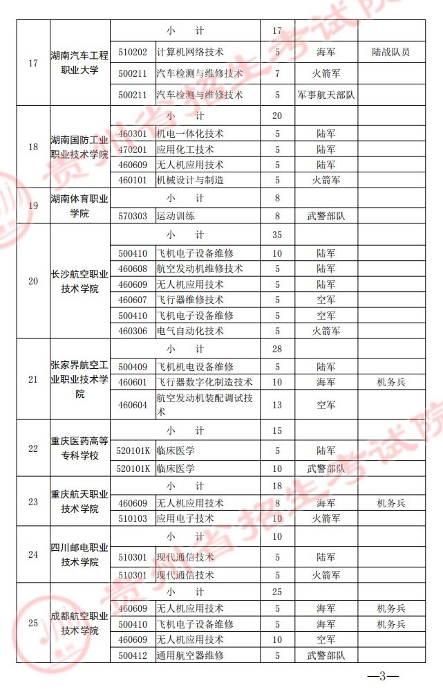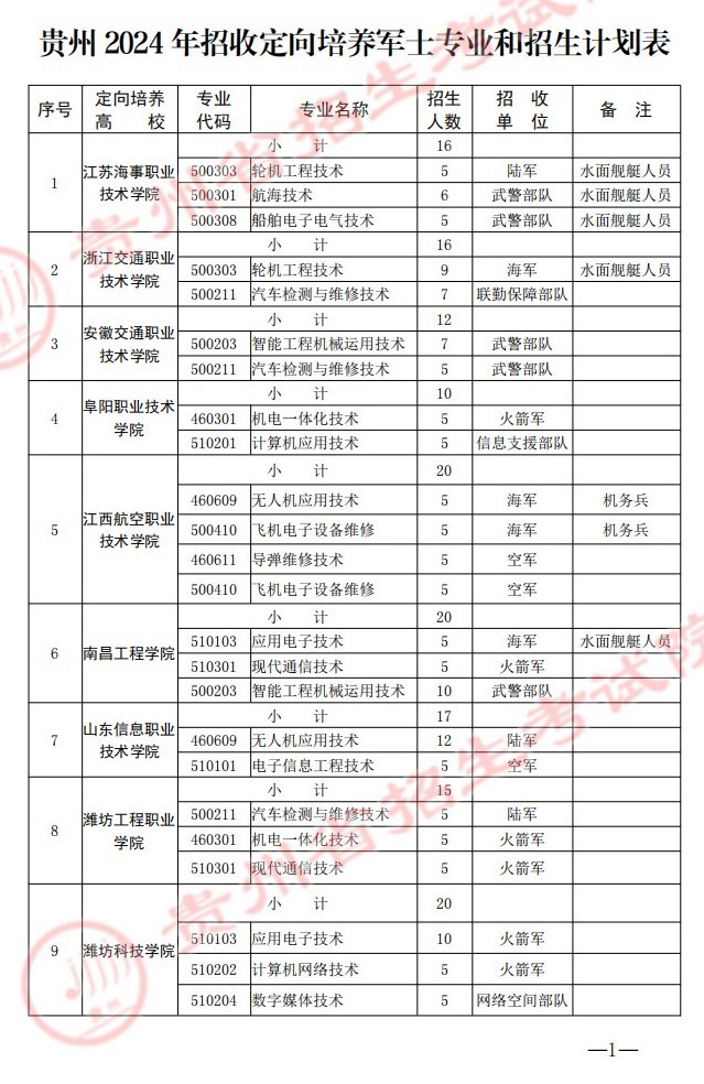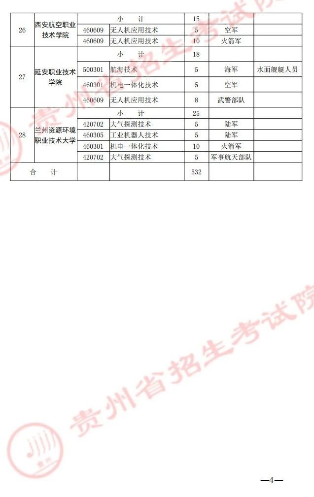 根据教育部和军委政治工作部、军委国防动员部《关于做好2024年招收定向培养军士工作的通知》(军政〔2024〕363号)精神,军队首次在贵州招收定向培养军士532人,其中女军士4人。定向培养军士学制3年,毕业后取得大专学历。前2.5年由定向培养高校负责学历教育,后0.5年由招收部队负责组织入伍实习,包括入伍训练和岗前培训。