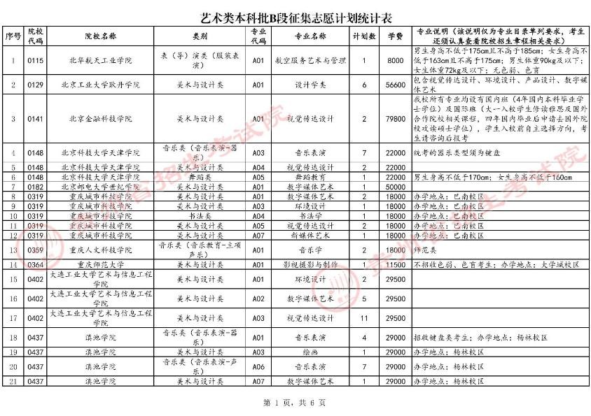 艺术类本科批B段投档录取后,部分考生因身体条件不符合院校招生章程要求等原因而退档,尚有剩余计划,现进行网上征集志愿。现将具体情况通告如下: