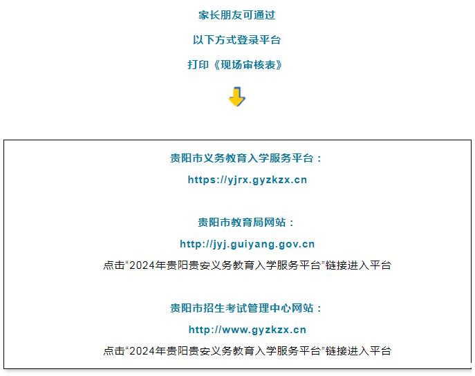根据贵阳贵安2024年义务教育入学工作安排,我市2024年义务教育阶段公办小学、初中入学《现场审核表》开始打印。7月25日-7月29日,家长可登录贵阳市义务教育入学服务平台进行相关操作。