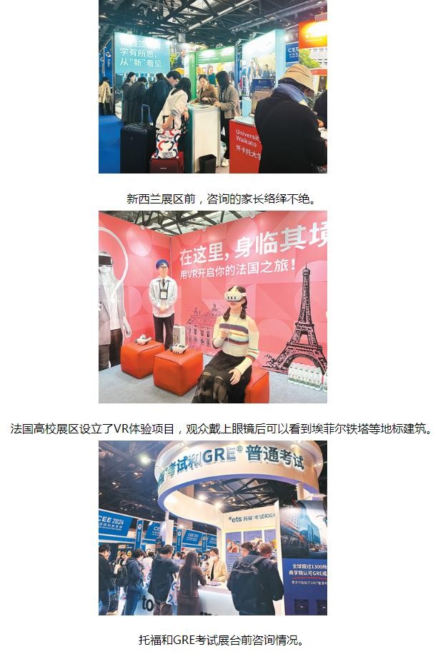 11月1日上午,北京国家会议中心展厅内人头攒动。在新西兰留学展台前,王女士带着儿子驻足询问。王女士说:“今年寒假,我想给孩子报名一个游学项目,提前感受一下国外校园生活。新西兰自然风光美丽,是个不错的选择。”
