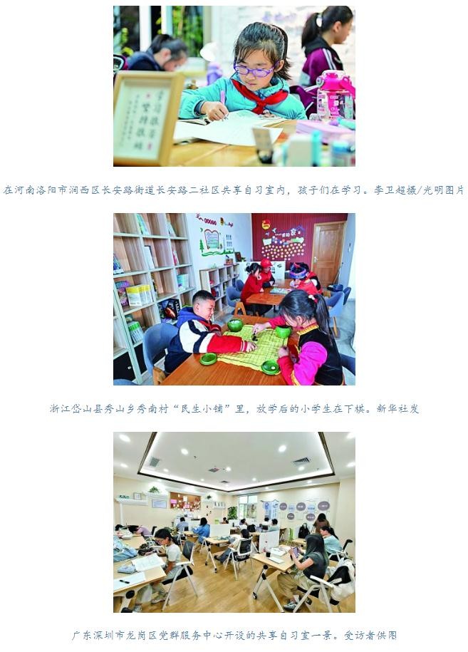 “之前,孩子放学早,家长下班晚,老人又不会辅导功课,‘三点半难题’一直困扰着我。现在共享自习室一开,问题迎刃而解。大人和孩子都很安心。”聊起共享自习室,家住七号街坊的王女士兴奋难掩,打开了话匣子,“孩子就读的小学就在社区内,距离共享自习室不过200米,高年级的孩子放学自己就能找过来。WiFi、打印机、饮水机,学习可能用到的东西一样不缺,更惊喜的是,还有退休老师志愿来帮忙辅导。孩子们互相带动,学习氛围特别好。”