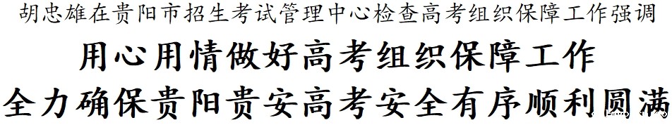 6月7日,省委常委、市委书记胡忠雄在贵阳市招生考试管理中心检查高考组织保障工作。他强调,要深入学习贯彻习近平总书记关于教育的重要论述和关于高考工作的重要指示批示精神,用心用情做好高考组织保障工作,全力确保贵阳贵安高考安全有序顺利圆满。