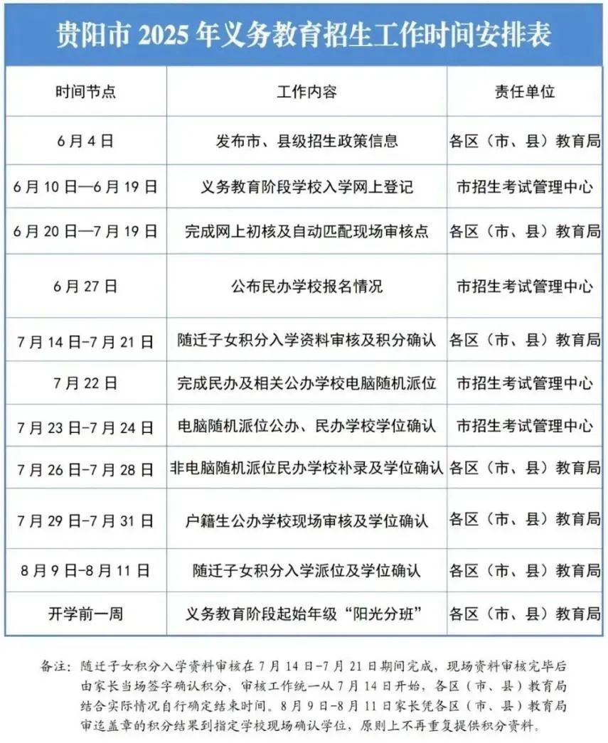 答:7月25日起,“爽贵阳”APP和义教入学服务平台会开放打印现场审核表,到时候家长可以在审核表上查看审核点和相关注意事项,或咨询登记所在辖区教育局。